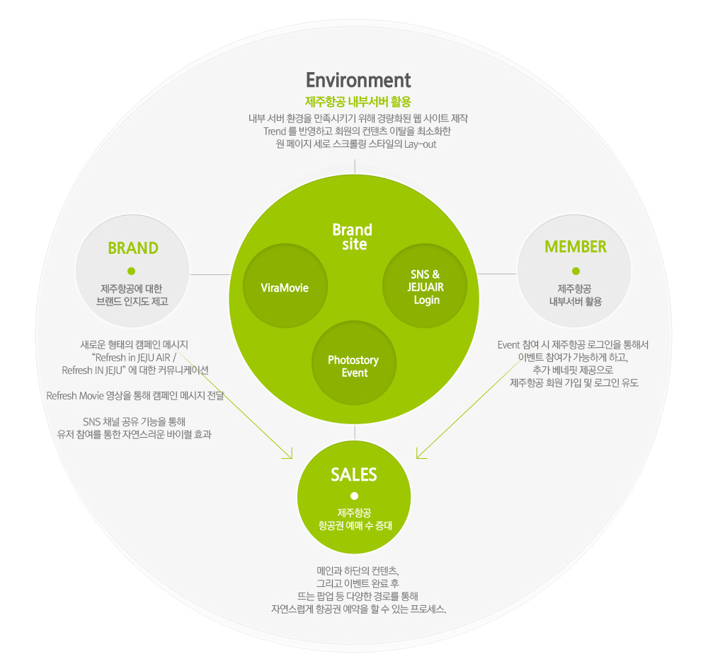 - 제주항공에 대한 브랜드 인지도 제고, 새로운 형태의 캠페인 메시지 “Refresh in JEJU AIR / Refresh IN JEJU” 에 대한 커뮤니케이션
